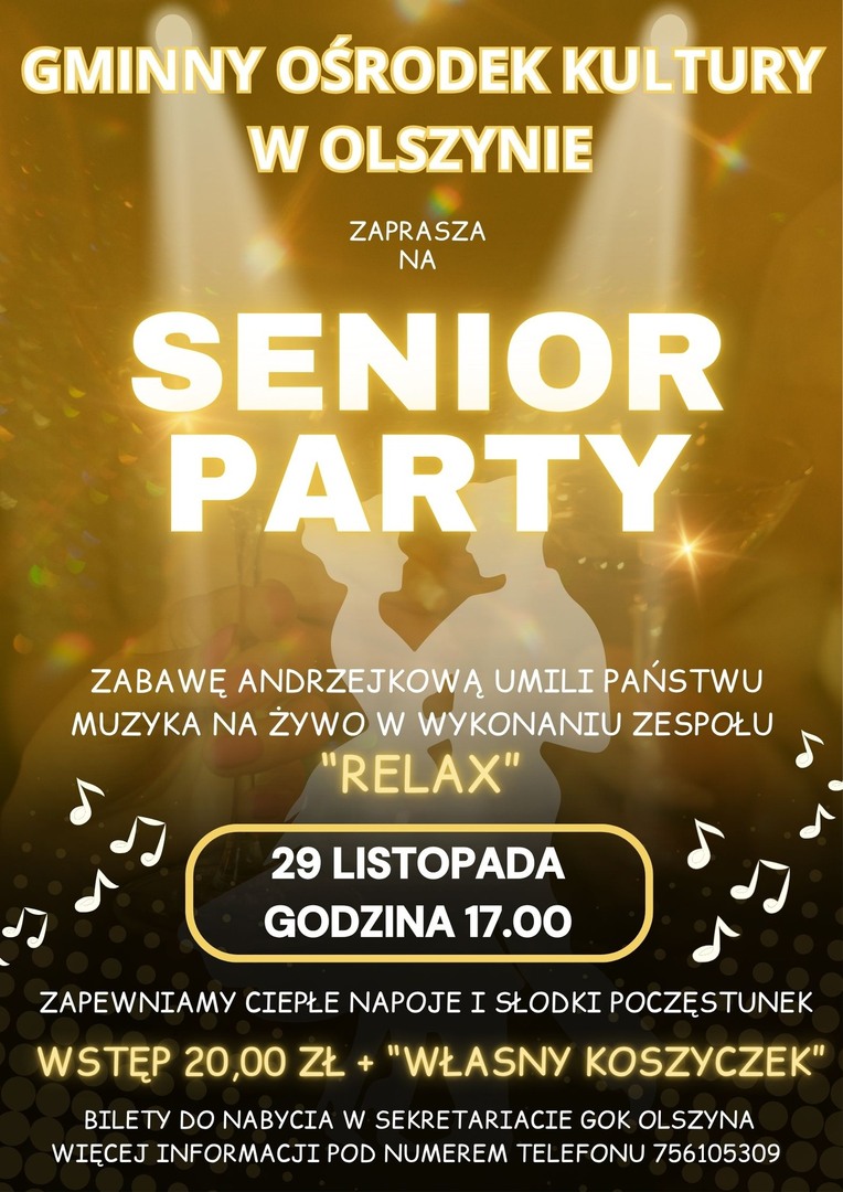 Gminny Ośrodek Kultury w Olszynie zaprasza na Zabawę Andrzejkową. Zabawę umili Państwu muzyka na żywo w wykonaniu zespołu "RELAX".